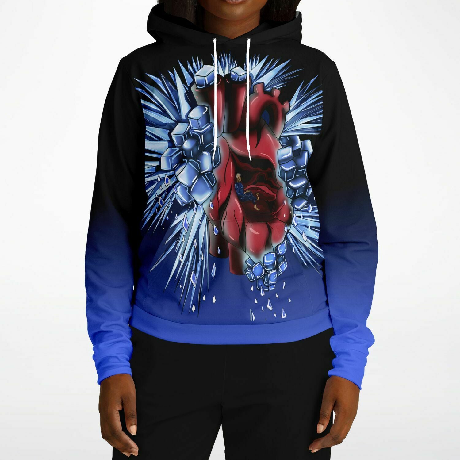 Want an epic hoodie that embodies the frozen heart you have within, hoping for someone to one day unfreeze it? Then check out the FrozenHeart Pullover Hoodie! This Pullover Hoodie is made for warmth and comfort. It features a large front pocket, hood with drawstring, and is custom cut and sewn.
