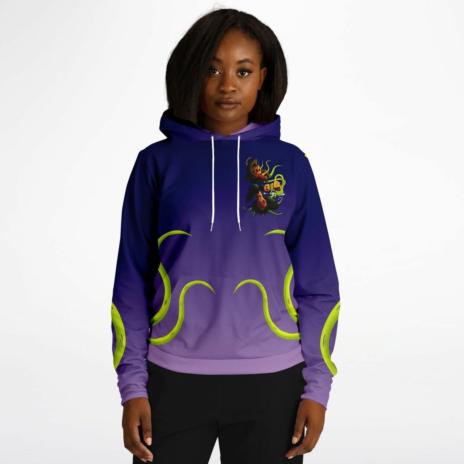 This hoodie is crafted from a premium polyester and spandex blend, making it both comfortable and durable. Each panel is individually printed, cut and sewn to ensure a flawless graphic with no imperfections. And high definition printing makes these a pleasure to wear for all occasions.