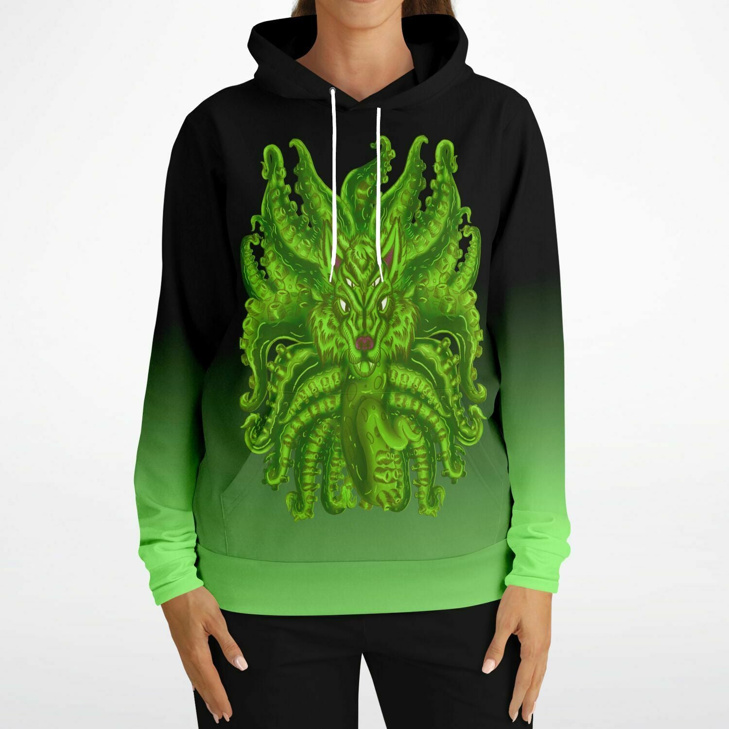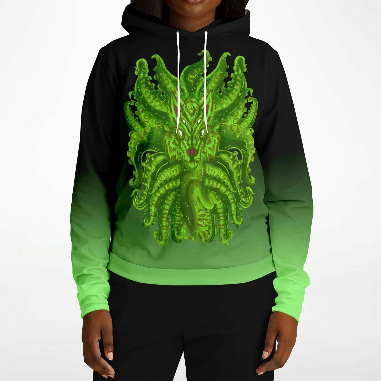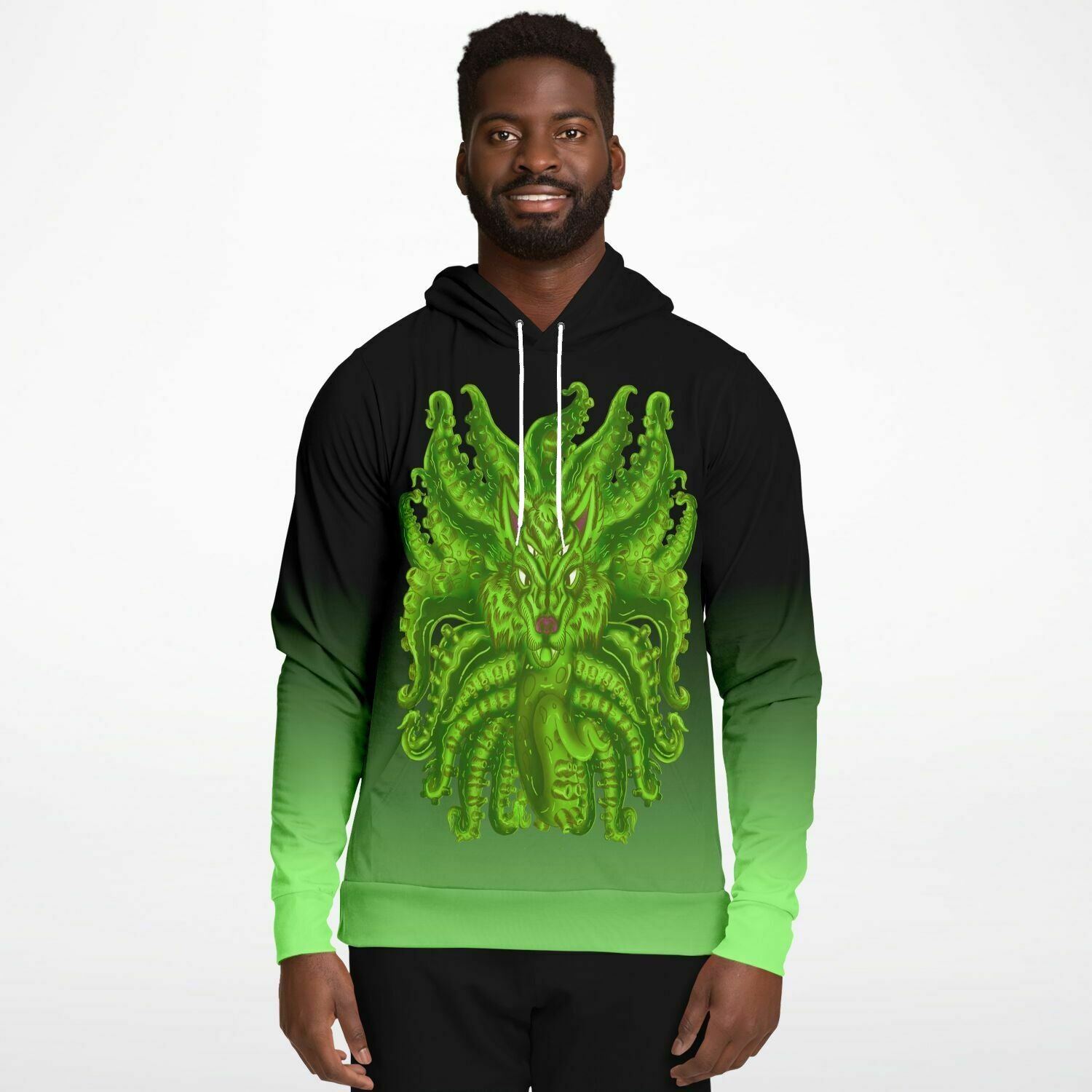 This comfy Radioactive Wolf Tulu hoodie is crafted from a premium polyester and spandex blend, making it both comfortable and durable. Each panel is individually printed, cut, and sewn to ensure a flawless graphic with no imperfections. And high definition printing makes these a pleasure to wear for all occasions. Wolf Tulu is a combination of wolf and Cthulhu, this hoodie is for those looking for bizarre art mixed with wolves and tentacles. The high-quality sublimation printing makes this a hoodie perfect for lovers of macabre decorum. The Radioactive Wolf Tulu hoodie has a relaxed fit, and it's perfect for wrapping yourself into on a chilly evening. Want an epic horror hoodie this fall and winter season? Then, the Radioactive Wolf Tulu hoodie is for you!